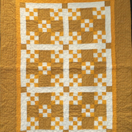 Sunflowers- the smaller 9- patch blocks were from Shirley Heier when she downsized her home. Shirley always felt that it was important to donate to Camp Carol Joy Holling. I set the blocks together with fabric from my stash. The sunflower backing fabric sets off this cheerful quilt. Sadly, Shirley passed before I finished this quilt. I am sure she would have been pleased to know her blocks went to the camp.