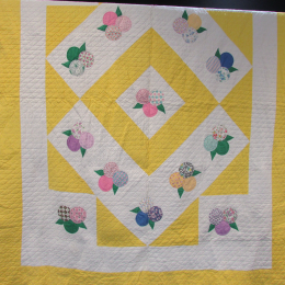Quilt purchased at an auction in Minden, NE in 2000, and it has been hanging in my home since then. It is now time to pass it on for someone else to enjoy. The history of the quilt is lost, but I know that someone spent many hour making it. There is a repair on the back.
