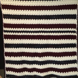Afghan was made by Velda Lenners, It took 27 skeins to complete. She makes many scarves & hates to give away each winter also.