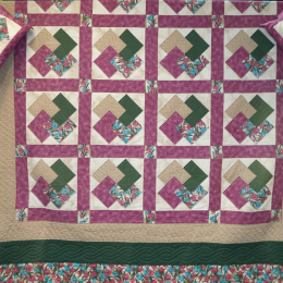 This quilt was made by Eileen Krumbach and handquilted by Mrs. Ruth Braun of Superior, NE. Eileen made the quilt for her aunt Esther Oberg, who was a commissioned missionary for the Lutheran Church in Tanzania Africa from 1951-1991. Esther Oberg is currently at the Wakefiled, NE Health Care Center and wanted the quilt to be auctioned to help support Carol Joy Holling, another Lutheran project. Esther Oberg is 93 years old and is pictured in the pictures of the quilt.
